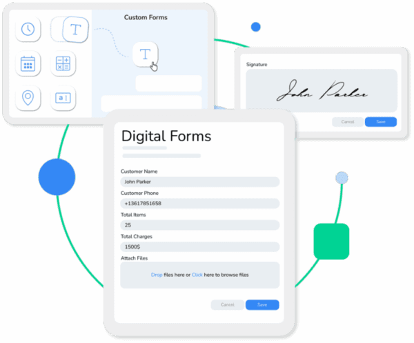 - ✔Customer approval forms: Capture customer signatures digitally for estimates, work authorization, and completion sign-offs.