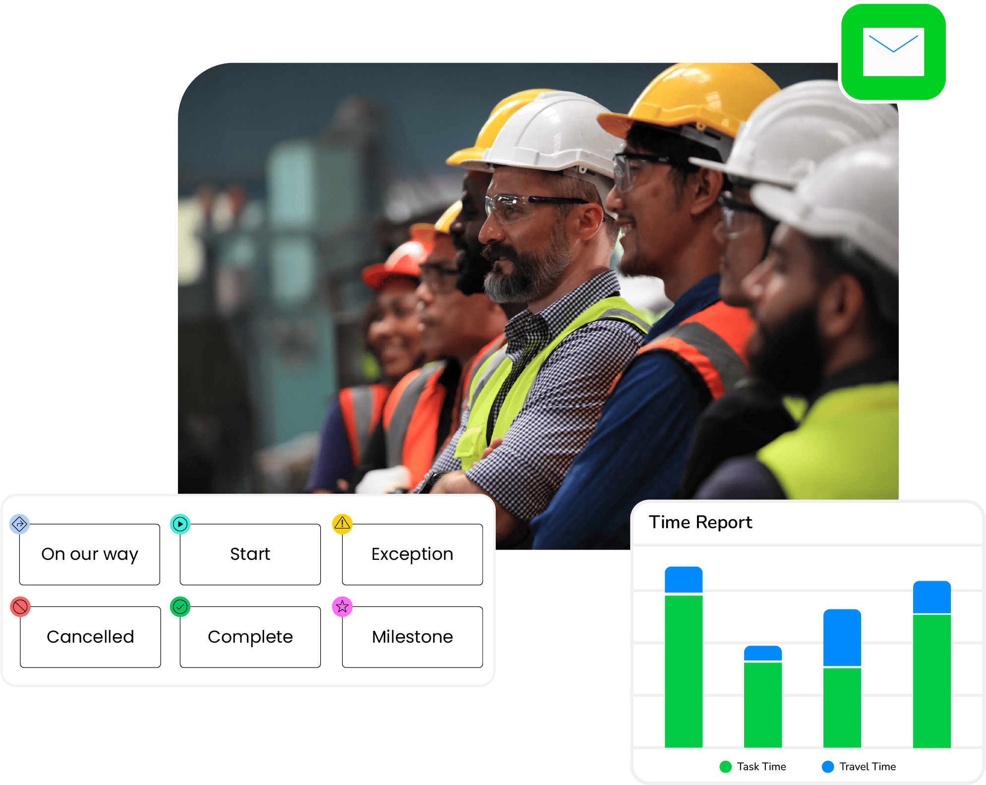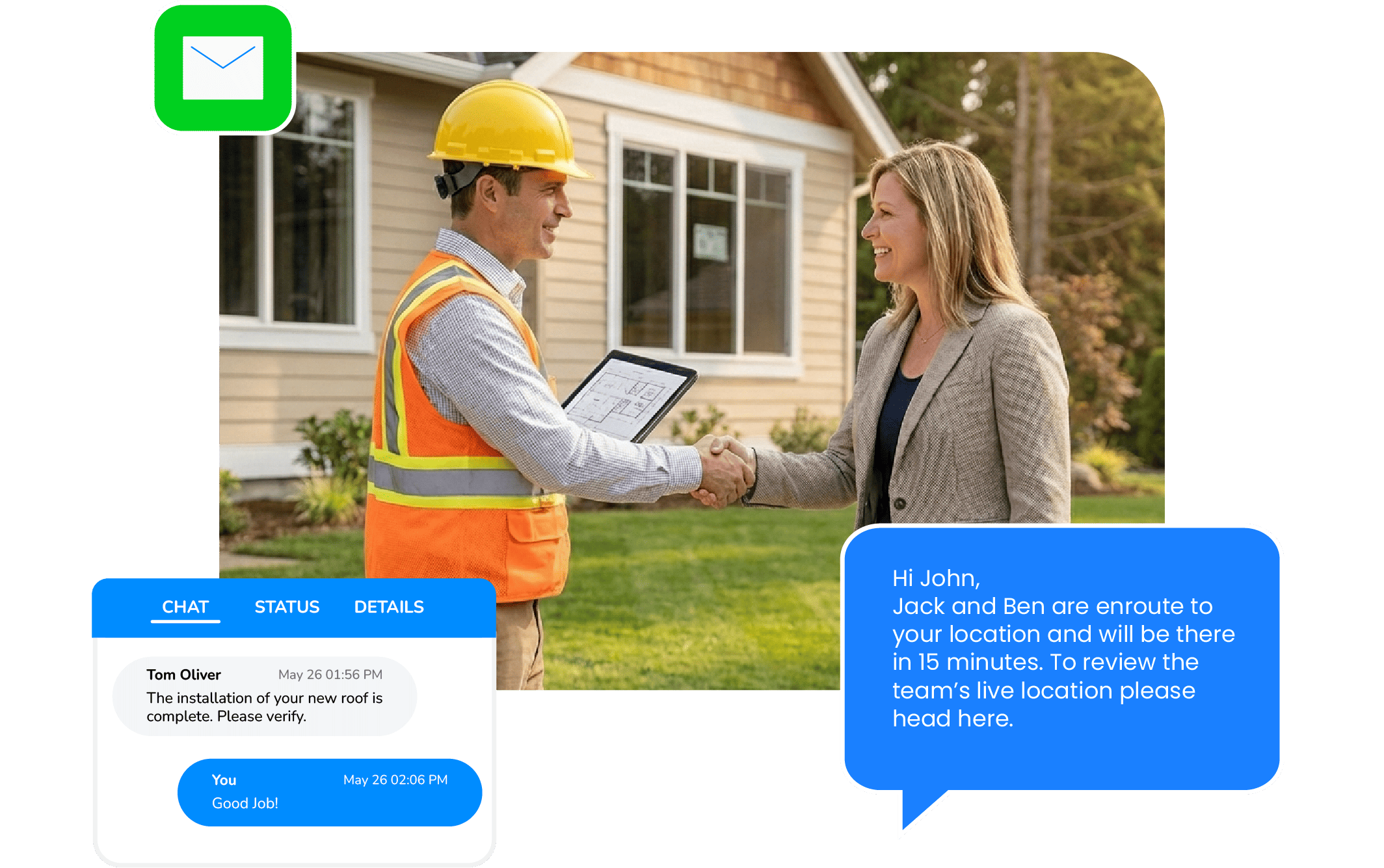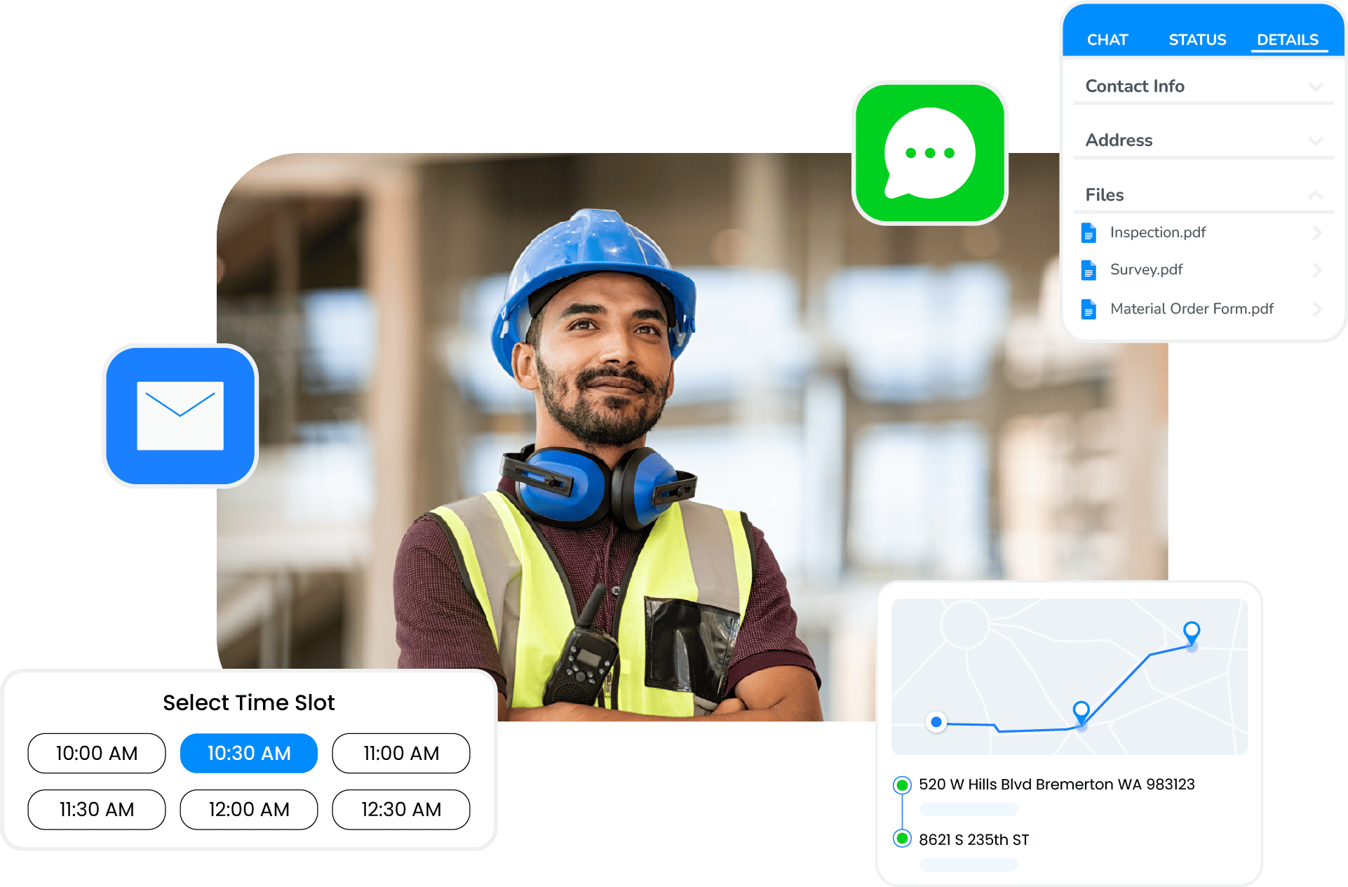 ✓ Share automatic ETAs and job status with supervisors and clients